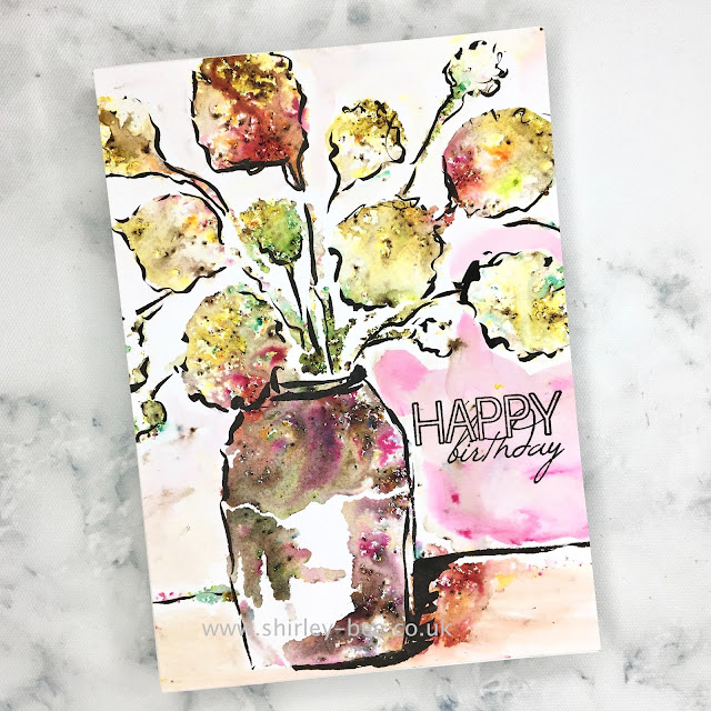 Having trimmed my panel to a square and matted onto black card, I adhered it to my card base, then added the heart and sentiments.